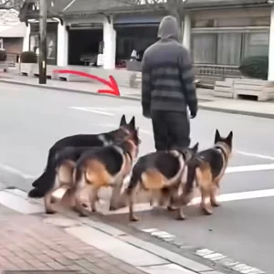 One sunny Sunday, a man named Victor walked through the park with three silent, still German Shepherds. At first admired, their unnatural calm soon unsettled the crowd—until…