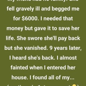 My friend had no family. She fell gravely ill and begged me for $6000. I needed that money, but I gave it to save her life. She…