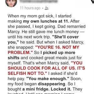 When my dad left on a two-week work trip, he told me not to worry—my stepmom Marcy would handle my lunch money. But when I asked her…