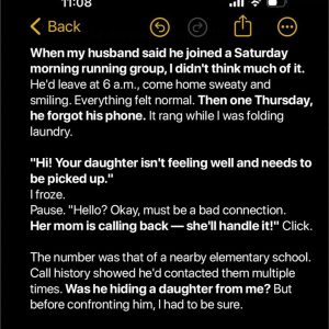 When my husband Nick started marathon training, I supported him—until a strange call from a school about “our daughter” made me question everything. We don’t have kids….