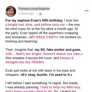 My SIL Threw Out the Colorful Car I Gifted for Her Son’s 5th Birthday…