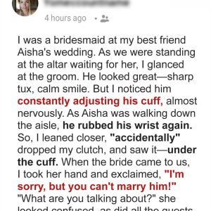 At my best friend Aisha’s wedding, everything seemed perfect—until I noticed the groom, Jason, nervously rubbing a fresh tattoo on his wrist. It wasn’t Aisha’s name—it was…