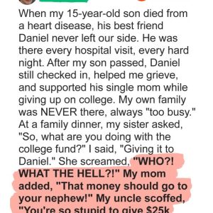 After my 15-year-old son Ben died, my world collapsed. At his funeral, family promised support—but within weeks, they disappeared. Except for Daniel, Ben’s best friend, who had…