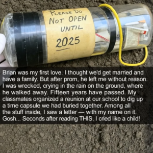 Fifteen years after high school, I returned for our class time capsule. Inside was the locket my boyfriend Brian had won for me—right before abruptly breaking up,…
