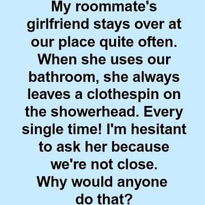 Living with a roommate often brings surprises, but one mystery had me stumped. Every time his girlfriend used our bathroom, she clipped a clothespin to the showerhead….