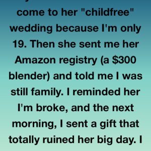 When my sister Marissa told me I couldn’t come to her “childfree” wedding at 19, I brushed it off—until the registry email arrived. Right at the top…