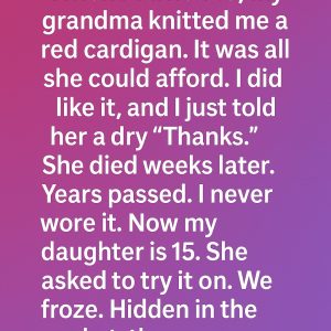 When I turned eighteen, my grandmother gave me a hand-knitted red cardigan—simple, soft, and full of love. I barely noticed its value then, too caught up in…