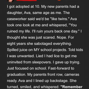 When I was adopted, my new sister Ava welcomed me with a quiet warning: “One day, I’ll ruin your life.” Over the next eight years, she made…