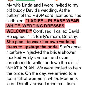 When wedding invitations went out with a strange note asking all female guests to wear white, many were confused. But it turned out to be a clever…
